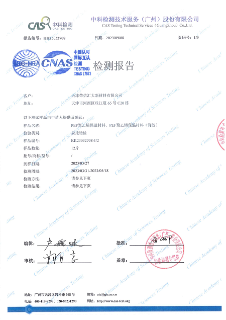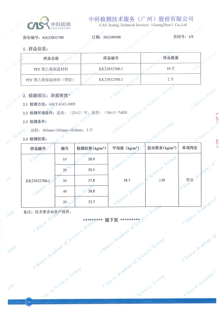 中科檢測技術(shù)服務(wù)(廣州)股份有限公司 PEF 聚乙烯保溫材料 檢測報告