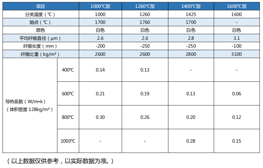 密度:定制;導(dǎo)熱系數(shù)(128kg/m3):0.1-0.3;使用溫度:1000-1600°C